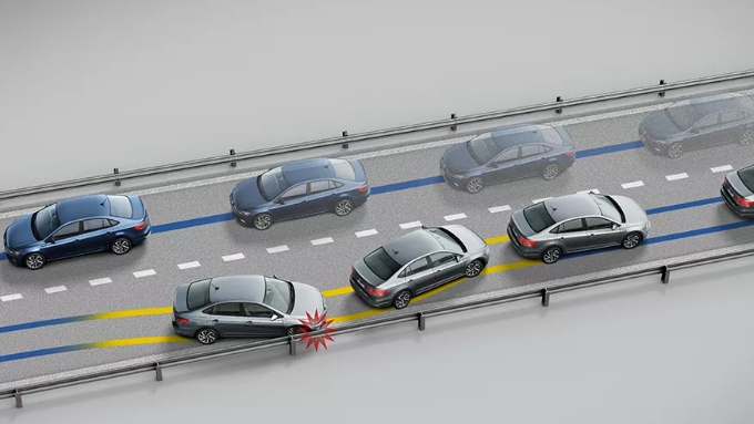 Em caso de colisão, os freios do carro são acionados automaticamente, evitando que o veículo sofra novo impacto.
